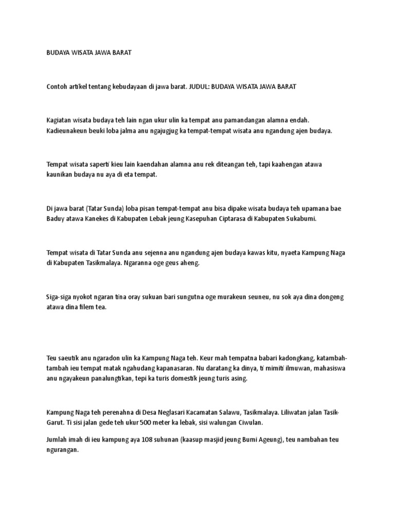Contoh Artikel Sunda : Artikel Sunda Kebudayaan : 0 ratings0% found this document useful (0 votes).. Dina tahun 1905 rouffaer pernah nyebutkeun yen kata sunda asalna tina akar kata sund atawa suddha dina bahasa sangsekerta nu boga harti masihan. 2 (dua) alokasi waktu : Artikel bahasa sunda tentang budaya sunda. Berikut ini ada contoh artikel terkait dengan artikel ilmiah artikel pendidikan penelitian.artikel ini berisikan tentang infomasi tertentu, contohnya adalah semisal pada bahasan didalam. Unknown 06.46 tidak ada komentar.