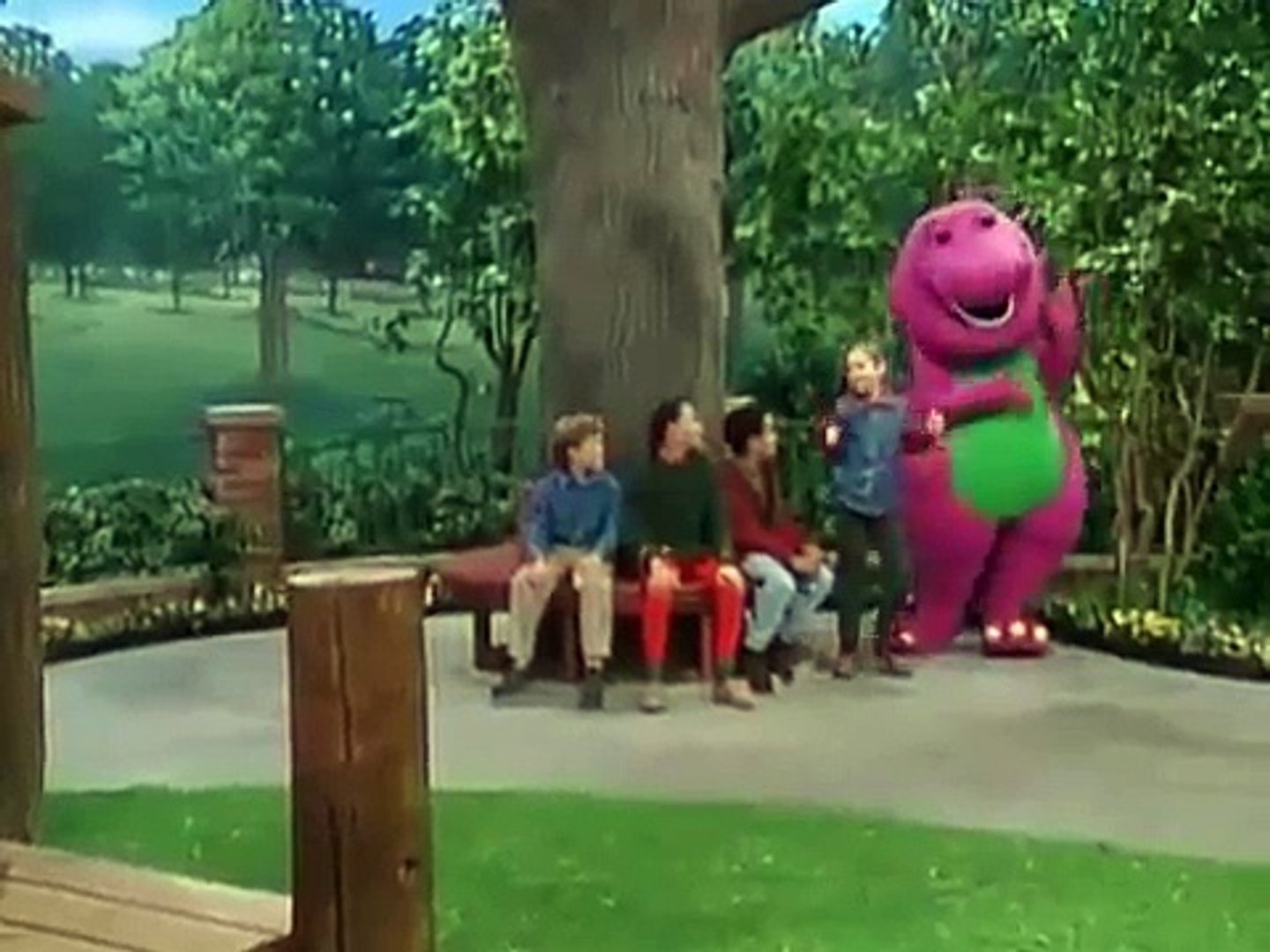 Barney and friends ashley, hannah, robert, and jeff offer to play school, with baby bop as teacher.